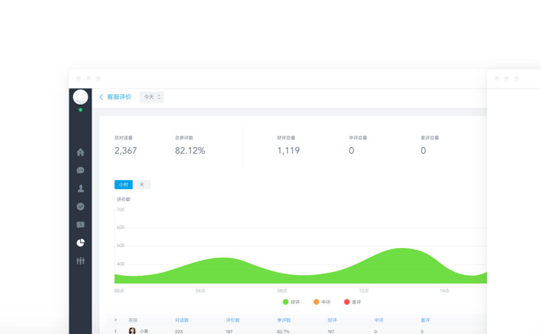 客服评价,顾客可对当前接待客服打分,会在统计中展现。